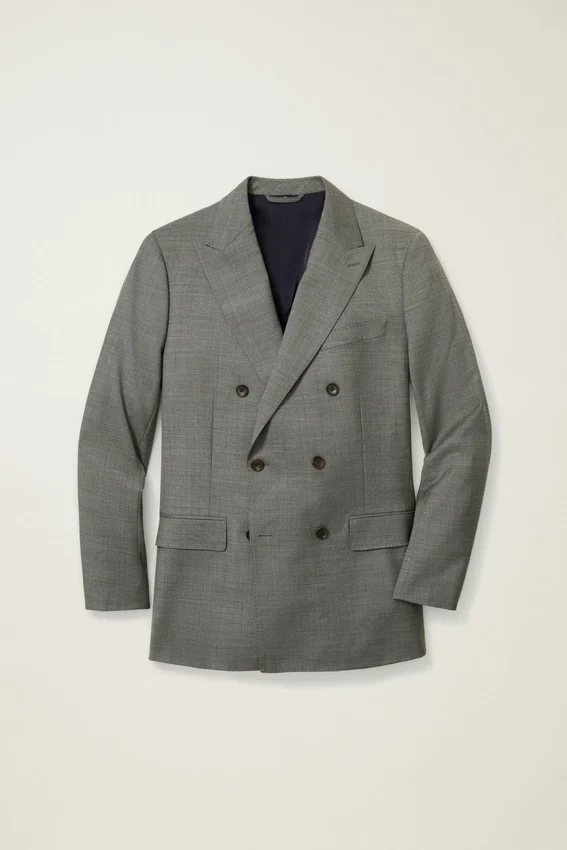 Premium Wool Blazer with Double-Breasted Styling. Italian Wool Fabric for Refined Occasions.