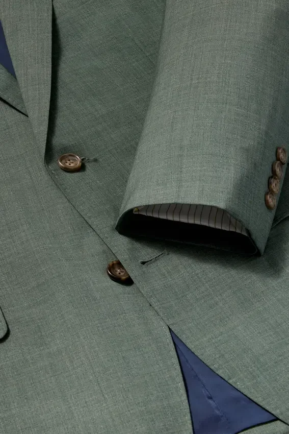 Fabric from Zignone | Partially Canvassed Construction | Fully Lined Interior | Sleeve Lining | Non Functional Buttons at Cuff | Double Vent | Interior Pockets and Locker Loop
