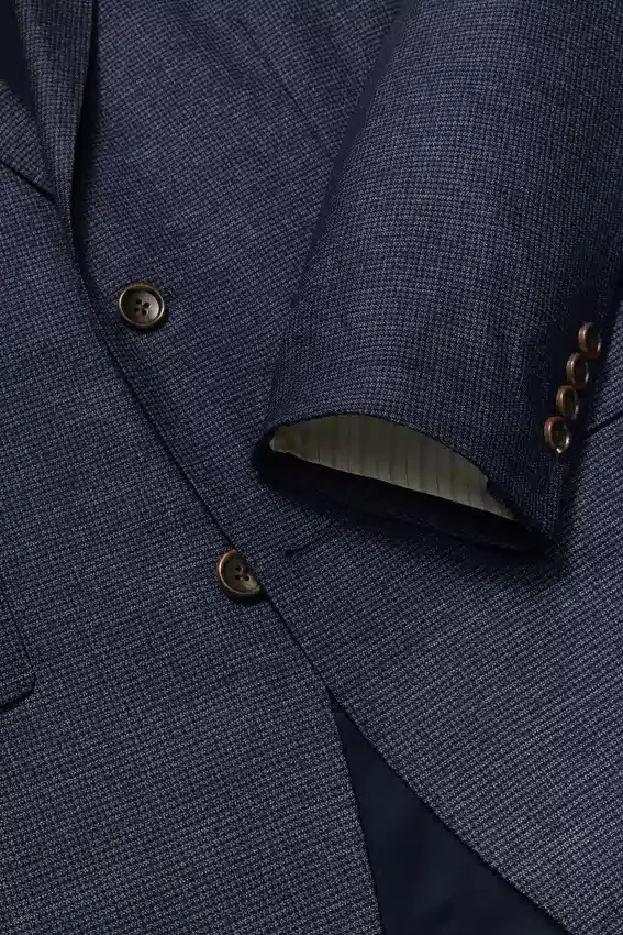 Half Canvassed Construction | Fully Lined Interior | Sleeve Lining | Non Functional Buttons at Cuff | Double Vent | Interior Pockets and Locker Loop