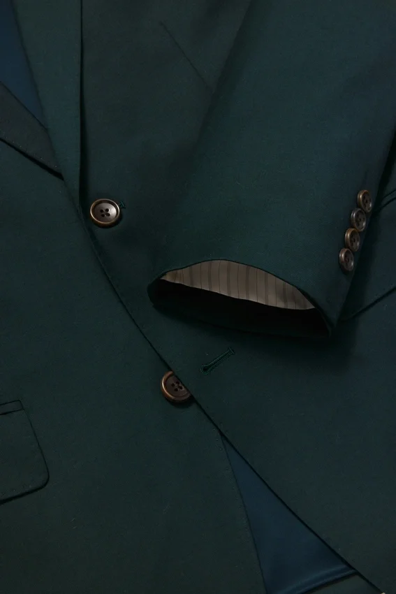Half Canvassed Construction | Fully Lined Interior | Sleeve Lining | Non Functional Buttons at Cuff | Double Vent | Interior Pockets and Locker Loop