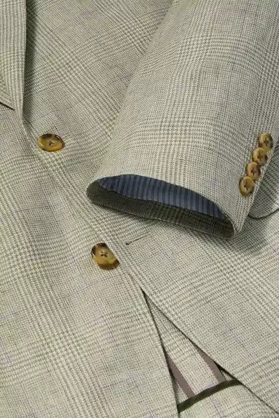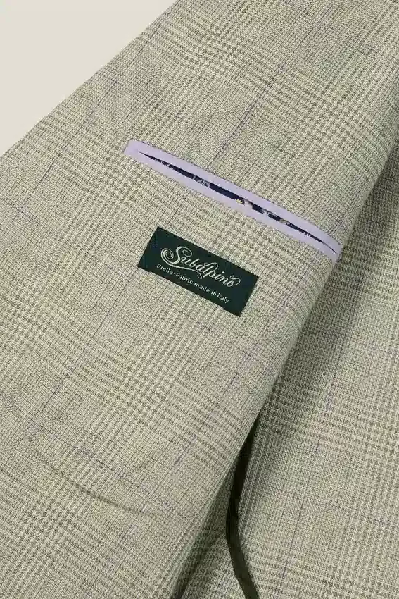 Fabric from Subalpino | Flap Pockets | Unlined Interior with Binding at Seams | Non Functional Buttons at Cuff | Sleeve Lining | Double Vent | Interior Pockets and Locker Loop | Lapel Pin is Removable