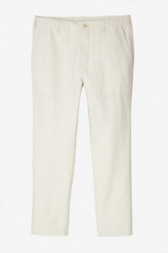 Garment Dyed | Interior Drawcord at Center Front | Zip Fly with Button at Cf | Patch Fatigue Pockets | Back Welt Pockets with Buttons