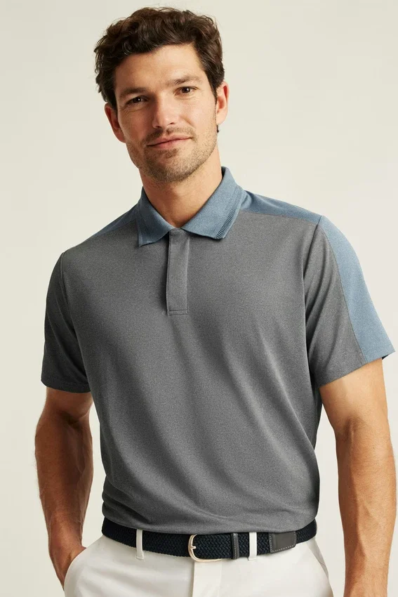 Classic Sport Style Meets Modern Tech in Our Moisture-Wicking Tour Pique Polo Shirts, Featuring Sleek Color-Blocked Panels and Lightweight Upf Fabric.