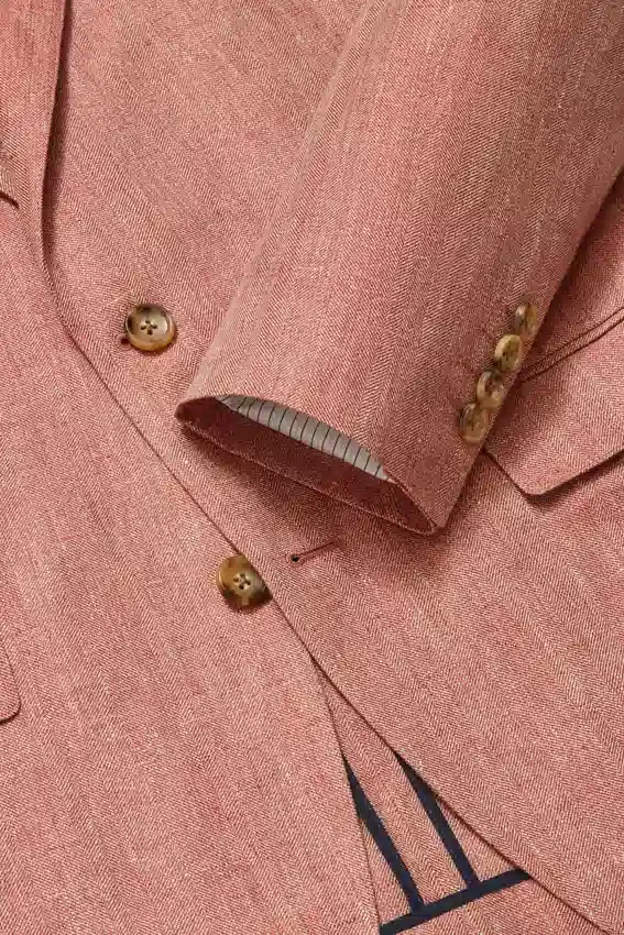 Notch Lapel | 2 Button Single Breasted | Flap Pockets | Non Functional Cuff Buttons | Unlined & Unconstructed | Interior Patch Pockets | Double Vent | Sleeves Are Lined