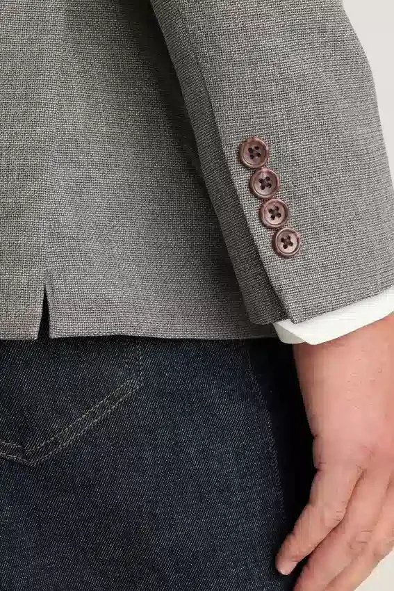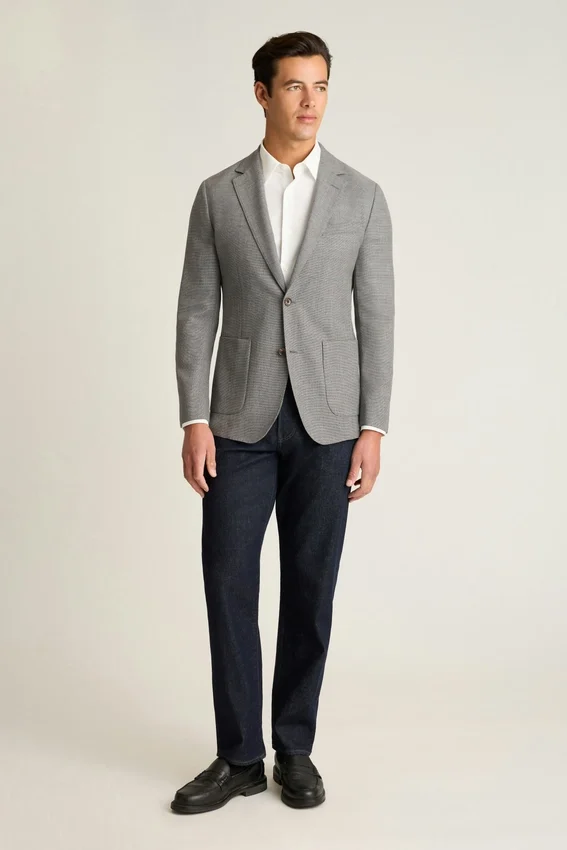 Lightly Constructed and Minimally Lined | Breathable Wool Hopsack from Italy’s Marzotto Mill | 3-1/4″ Lapel | Patch Pockets | Two-Button Single-Breasted | Unlined Interior with Shoulder Support and Binding at Seams | Sleeve Lining | Non-Functional Buttons at Cuffs | Double Vent | Interior Welt Pockets